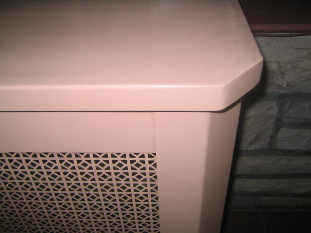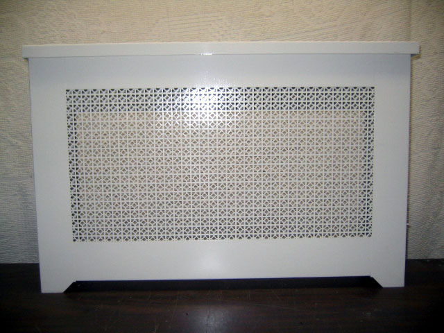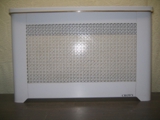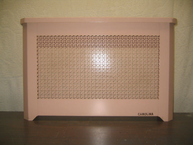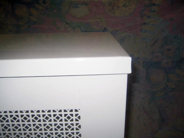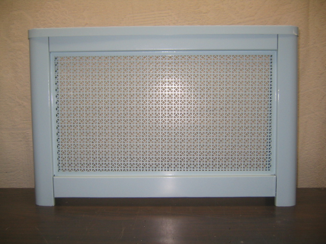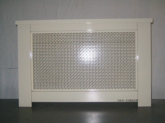 National Metal Enclosures manufacturers of Radiator Enclosures. Enclosures not only improve the appearance of your home, they increase heating efficiency and protect children from accidents due to exposed hot radiators. Enclosures are quality crafted of furniture steel in many styles to fit any décor. Available in many colors. Enclosures are fabricated of 18 gauge sheet metal. They will be of the same design as the picture but we have different corners (rounded, square, and beveled). The radiator covers are approved by the fire department. The top panel prevents the heat from rising up the wall directly to the ceiling from top of the radiator coils, but the top of covers are hinged so they can be raised. The decorated front portion has a maximum amount of open area for full heat flow finish of cover baked on enamel.